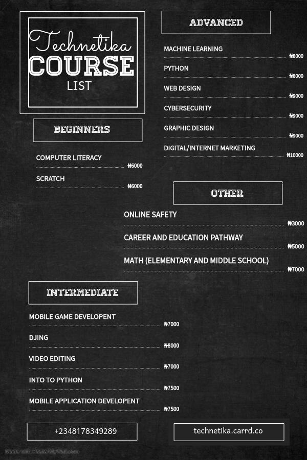 | What is Technetika Tutoring | Technetika Tutoring is an online service that teaches everybody both children and adult, employed and unemployed, beginner or advanced. Whatever category you fall into we teach you how to be a master in coding, cinematography, math and the works and best of all we make sure our lessons are as flexible as you want them to be. |