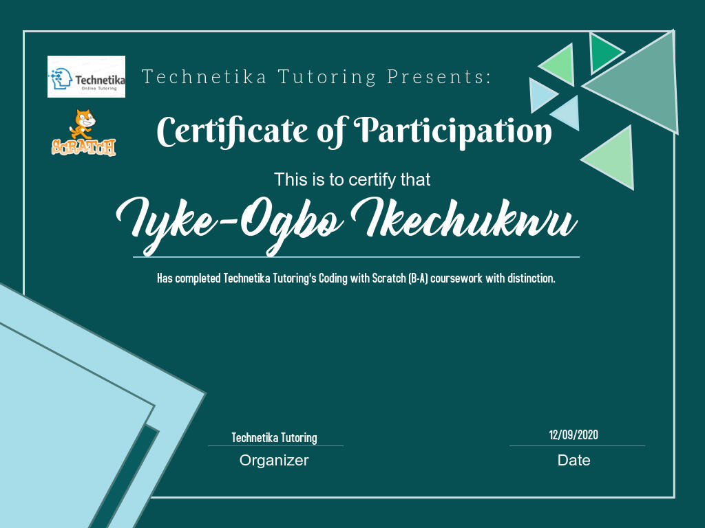 My experience with Technetika was very enlightening. I opted for the group learning and I did not regret it. I learnt how to code stories and games. It turned out to be extremely interesting as our instructor was very explanatory. We started with the basics and progressed from there. Although I had previous knowledge of coding this training was really much more than I had been taught previously. All our lessons were on schedule and they were very interactive. In order not to waste time, those who didn’t understand a thing or two were required to stay back and ask all their questions and get more detailed explanation. At the end of the week-long program, I was able to successfully code my own short story with movement and sound effects. It was an amazing experience to sit back and watch my code run perfectly.