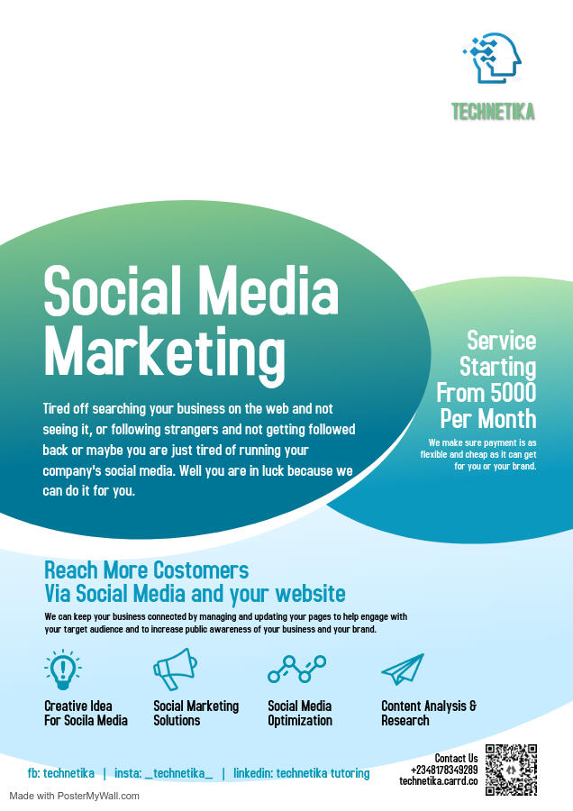 Tired off searching your business on the web and not seeing it, or following strangers and not getting followed back or maybe you are just tired of running your company's social media. Well you are in luck because we can do it for you.